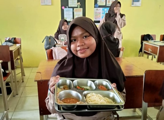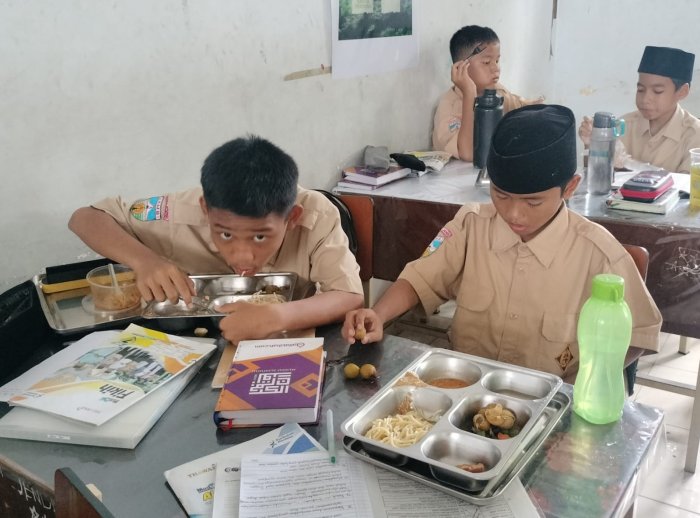 Kota Jambi (MTsN 2) - Program Makan Bergizi Gratis (MBG) kembali dilaksanakan di MTsN 2 Kota Jambi dengan menghadirkan menu yang berbeda dari biasanya. Pada kesempatan kali ini, sorotan untuk siswa-siswi kelas 7C, 7D, 7E, dan 7K.