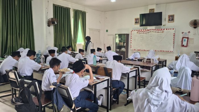Kota Jambi (MTsN 2) - Fhara Putri Utami, mahasiswi Universitas Islam Negeri Sulthan Thaha Saifuddin (UIN STS) Jambi, melakukan praktek mengajar dalam rangka program Pengenalan Lapangan Persekolahan (PLP) pada Selasa, 7 Oktober 2025 di kelas 7F MTsN 2 Kota Jambi. Ia mengajar mata pelajaran Bahasa Inggris dengan materi Procedure Text.