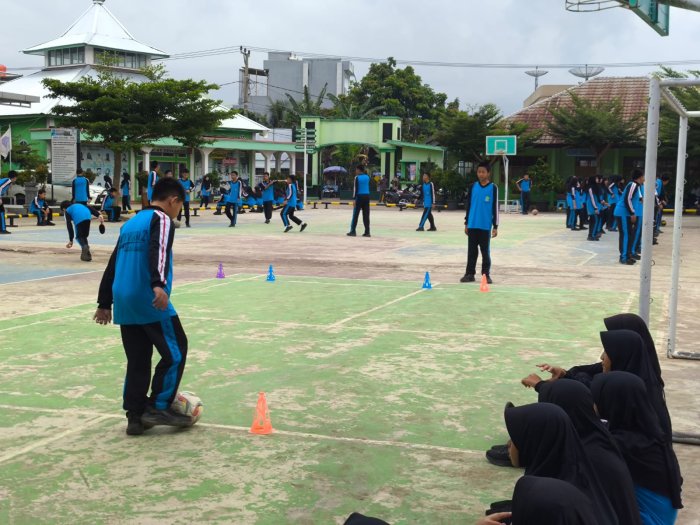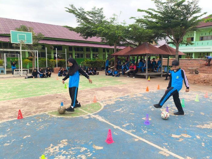 Kota Jambi (MTsN 2) - Siswa kelas 7A MTsN 2 Kota Jambi mengikuti pembelajaran olahraga pada Kamis (9/10/2025) dengan materi teknik dasar sepak bola, meliputi dribbling dan shooting. Kegiatan berlangsung di lapangan sekolah dengan penuh antusiasme.