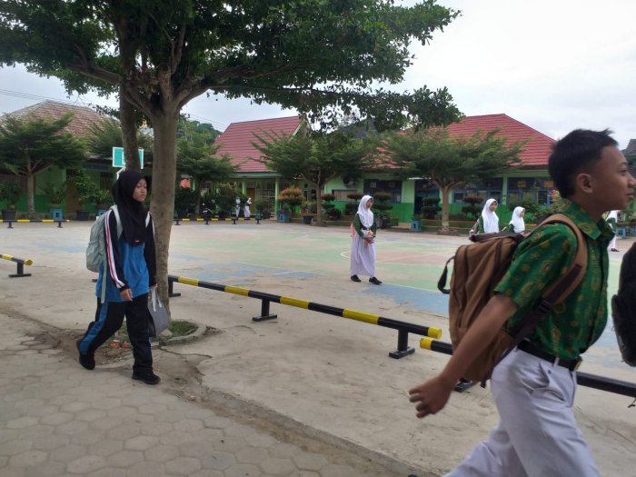 Kota Jambi (MTsN 2) - Pada Kamis pagi, 9 Oktober 2025, langit di atas MTsN 2 Kota Jambi tampak diselimuti awan kelabu. Suasana mendung menyambut kedatangan para siswa yang mulai memasuki gerbang madrasah. Meskipun cuaca terlihat murung, semangat para siswa untuk memulai hari tetap terasa di lingkungan sekolah.