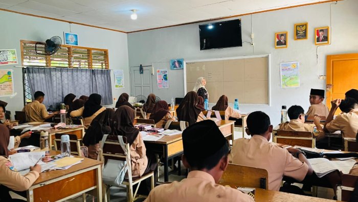 Kota Jambi (MTsN 2) - Pada Rabu, 8 Oktober 2025, Laras Wati, seorang mahasiswi Program Latihan Profesi (PLP) dari Program Studi Pendidikan Agama Islam, melaksanakan praktik mengajar di MTsN 2 Kota Jambi. Ia mengajar mata pelajaran Al-Qur’an dan Hadist .