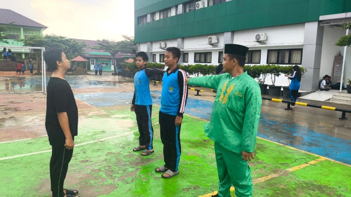 Kota Jambi (MTsN 2) - Meski langit mendung dan hujan turun pada siang hari Jumat (10/10/2025), semangat siswa kelas 8K MTsN 2 Kota Jambi tetap tinggi untuk melaksanakan latihan petugas upacara. Kegiatan ini berlangsung di lapangan madrasah dengan didampingi wali kelas mereka, Ibu Silvina Arifa, S.Pd. Para siswa menunjukkan antusiasme dan disiplin selama latihan, mencerminkan semangat kebersamaan serta komitmen terhadap pembinaan karakter di lingkungan sekolah.