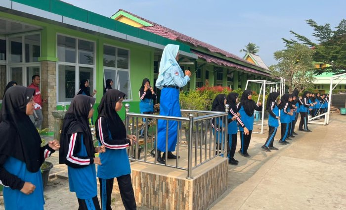 Kota Jambi (MTsN 2) - Halaman MTsN 2 Kota Jambi dipenuhi suasana ceria dan semangat pada Jumat pagi, 10 Oktober 2025. Pada hari itu, warga madrasah mengikuti kegiatan senam bersama yang diiringi lagu "Tabola Bale". Lagu ini tengah populer di kalangan pelajar dan dikenal dengan irama yang membangkitkan semangat.