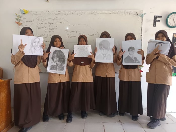 Kota Jambi (MTsN 2) - Rabu (15/10/2025), siswa kelas 8J MTsN 2 Kota Jambi mengikuti pembelajaran Seni Budaya bersama Ibu Pitriati, M.Pd. Pada hari ini, para siswa membawa serta menampilkan hasil karya mereka di kelas. Gambar-gambar wajah yang dibuat dengan teknik grid tampak rapi dan proporsional, menunjukkan pemahaman dan kreativitas siswa dalam menerapkan metode grid yang diajarkan. Metode ini dikenal efektif untuk membantu menghasilkan gambar yang lebih presisi dan proporsional.