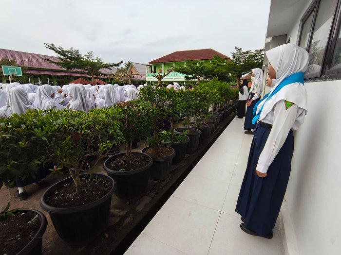 Kota Jambi (MTsN 2) - Pada Senin, 20 Oktober 2025, kegiatan upacara bendera di MTsN 2 Kota Jambi kembali dilaksanakan dengan dukungan penuh dari tim PMR yang bertugas memberikan layanan kesehatan ringan bagi siswa yang membutuhkan.