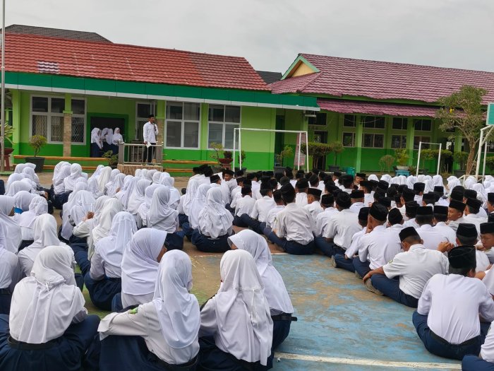 Kota Jambi (MTsN 2) - Pada Senin, 20 Oktober 2025, Wakil Kepala Madrasah Bidang Kesiswaan MTsN 2 Kota Jambi, Martha Wahyudi, M.Pd, memberikan sejumlah arahan penting kepada seluruh siswa usai pelaksanaan upacara bendera. Arahan tersebut disampaikan di halaman madrasah dan diikuti oleh seluruh siswa serta dewan guru.