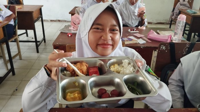 Qaisar, siswa kelas 7A, menyampaikan kesannya setelah menikmati menu hari ini. “Ayam gorengnya enak banget, renyah di luar tapi lembut di dalam. Aku juga suka anggurnya, segar dan manis. Semoga MBG terus ada setiap minggu,” ujarnya dengan semangat. Komentar ini mencerminkan antusiasme siswa terhadap program MBG yang tidak hanya menyehatkan, tetapi juga menyenangkan.