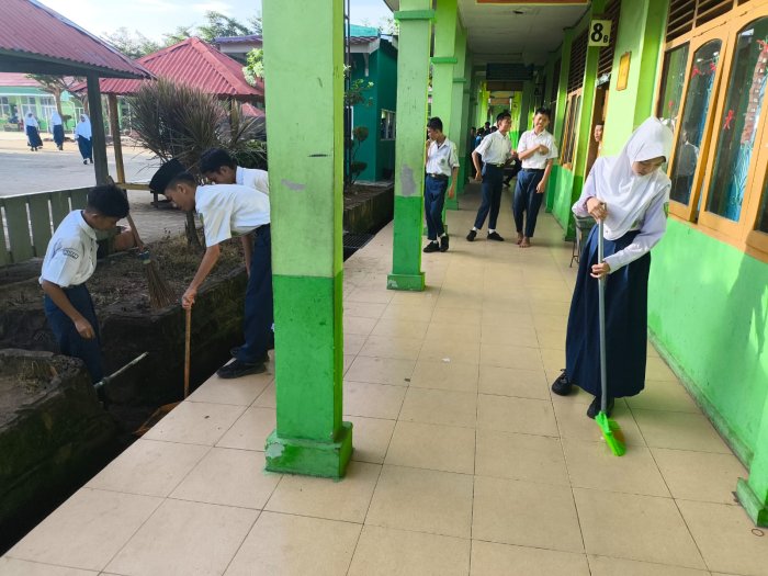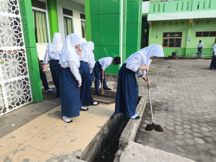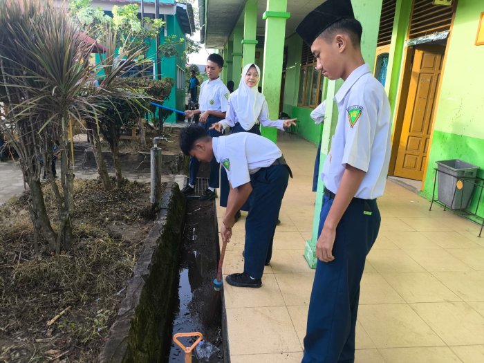 Pada pagi hari, para siswa tampak membersihkan lingkungan kelas masing-masing. Mereka melakukan berbagai aktivitas seperti menyapu lantai serta membersihkan sampah di lingkungan sekitar. Kegiatan bersih-bersih ini juga merupakan bagian dari dukungan terhadap program Ekoteologi yang digagas oleh Kementerian Agama. Program tersebut mendorong satuan pendidikan untuk mengintegrasikan nilai keagamaan dengan kepedulian terhadap lingkungan hidup. Melalui aksi sederhana seperti membersihkan kelas, siswa diajak memahami bahwa menjaga kebersihan adalah bagian dari ibadah, tanggung jawab moral, serta bentuk cinta terhadap ciptaan Tuhan.
