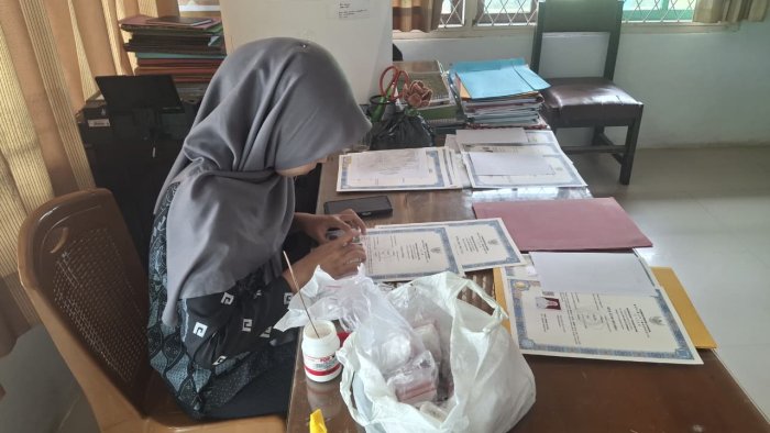 Dengan suasana kerja yang kondusif dan dukungan dari staf Tata Usaha, Sekar menjalankan tugasnya dengan penuh tanggung jawab. Ia tampak teliti dalam memastikan setiap foto tertempel sesuai dengan nama dan data siswa yang tercantum, serta menjaga agar dokumen tetap bersih dan tidak rusak.