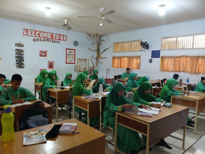 Kota Jambi (MTsN 2) - Pada Jumat pagi (24/10/2025) siswa kelas 8K MTsN 2 Kota Jambi melaksanakan kegiatan asesmen berupa latihan soal untuk mengevaluasi pemahaman mereka terhadap materi Bab II mata pelajaran Ilmu Pengetahuan Alam (IPA). Latihan soal ini mencakup empat subbab penting yang berkaitan dengan sistem-sistem dalam tubuh manusia, yaitu: makanan dan sistem pencernaan, sistem pernapasan, sistem peredaran darah, serta sistem ekskresi atau pembuangan.