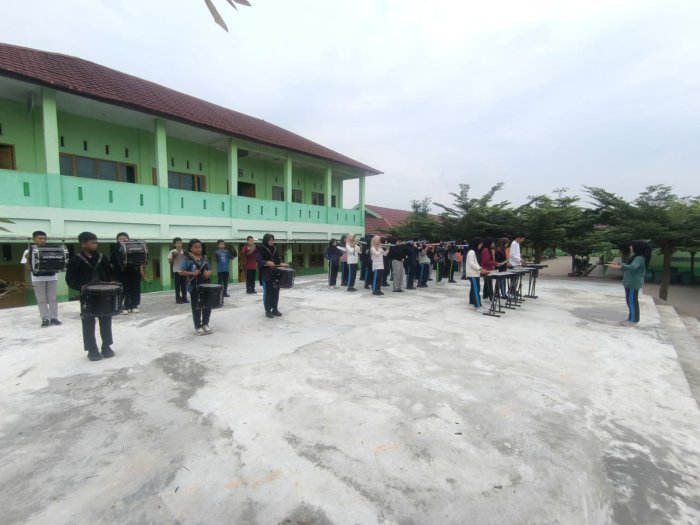 Kota Jambi (MTsN 2) - Semangat luar biasa ditunjukkan oleh anggota ekstrakurikuler Drum Band MTsN 2 Kota Jambi pada Sabtu (25/10/2025). Meskipun hari libur, mereka tetap datang ke madrasah dengan penuh antusias untuk mengikuti latihan rutin sebagai persiapan penampilan pada peringatan Hari Guru Nasional 2025 yang akan digelar dalam waktu dekat.