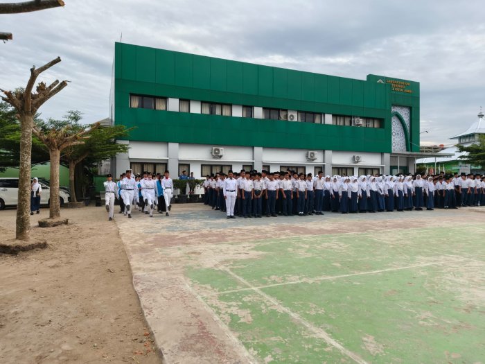 Kota Jambi (MTsN 2) - Lapangan MTsN 2 Kota Jambi menjadi tempat pelaksanaan upacara peringatan Hari Sumpah Pemuda ke-97 pada Selasa, 28 Oktober 2025. Kegiatan ini berlangsung dengan penuh khidmat dan diikuti oleh seluruh warga madrasah, termasuk guru, staf, dan siswa. Upacara tersebut juga melibatkan mahasiswa Program Latihan Profesi (PLP) sebagai petugas pelaksana, serta anggota Pasukan Pengibar Bendera (Paskibra) MTsN 2 Kota Jambi.