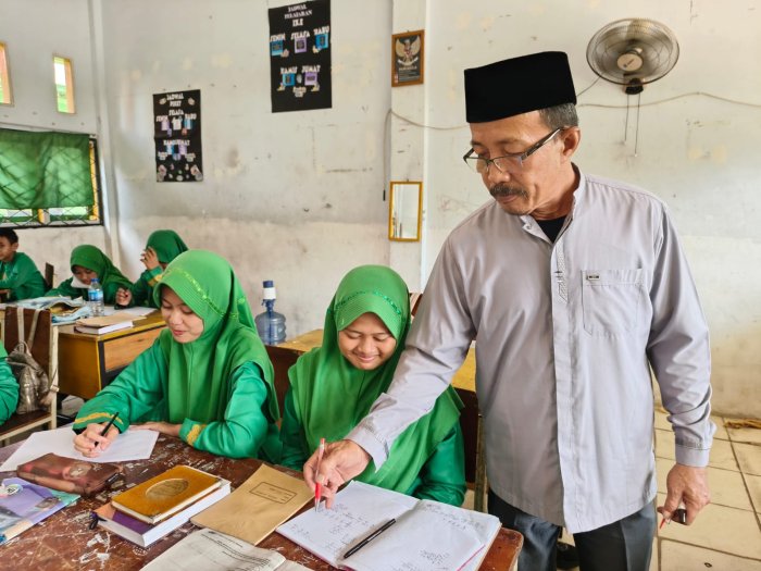 Menariknya, guru tidak hanya memberikan soal, tetapi juga aktif mengecek hasil kerja siswa satu per satu. Dengan pendekatan personal ini, AH. Muktabari, S.Ag. memastikan setiap siswa memahami langkah-langkah penyelesaian dan memberikan umpan balik langsung terhadap kesalahan atau kekeliruan yang ditemukan.