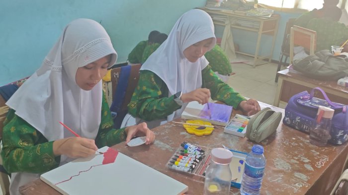 Kota Jambi (MTsN 2) - Kelas 8C di MTsN 2 Kota Jambi berubah menjadi galeri seni pada Kamis pagi ketika para siswa mengikuti kegiatan melukis suasana di atas kanvas. Kegiatan ini merupakan bagian dari pembelajaran Seni Rupa yang dipandu oleh guru Seni Budaya, Titin Sumanty, S.Sn. Dalam sesi tersebut, siswa diajak untuk menangkap momen, emosi, dan lanskap melalui sapuan warna di kanvas.