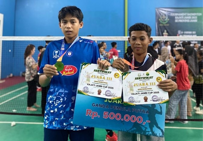 Kota Jambi (MTsN 2) - Gaung prestasi kembali menggema dari siswa MTsN 2 Kota Jambi! Kali ini, sorotan tertuju pada M. Fakhri Pratama, siswa kelas 9H, yang sukses menyabet gelar Juara 3 Ganda Badminton Tingkat Pemula dalam ajang bergengsi Lomba Kejati Jambi Cup Tingkat Kota Jambi yang digelar pada 14–19 Oktober lalu.