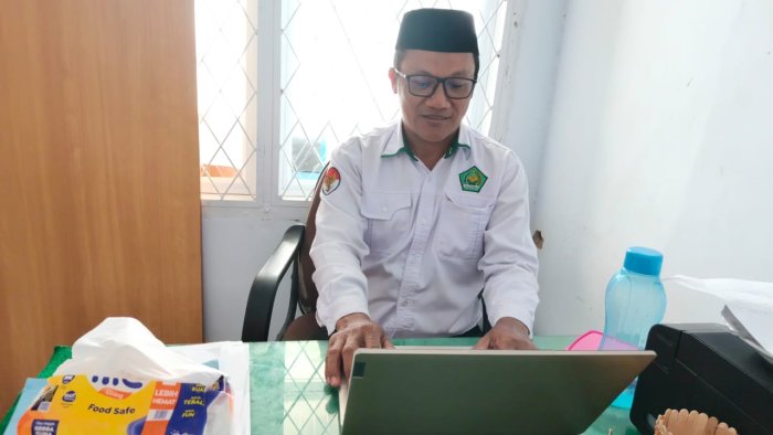 Bertempat di ruang tata usaha, Caripuddin melakukan penginputan dan pembaruan data aset madrasah secara digital. Proses ini mencakup verifikasi kondisi barang, penyesuaian data dengan inventaris fisik, serta pelaporan melalui sistem yang terintegrasi dengan Kementerian Agama.