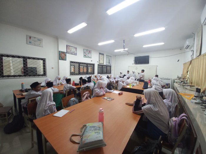 Pembelajaran dipandu oleh Silvia Arifa, S.Pd, yang merupakan guru pembimbing ekstrakurikuler tersebut. Kegiatan berlangsung di ruang lab IPA dengan suasana yang aktif dan penuh semangat. Para siswa terlihat berpartisipasi aktif dalam diskusi dan tanya jawab yang berlangsung selama kegiatan.