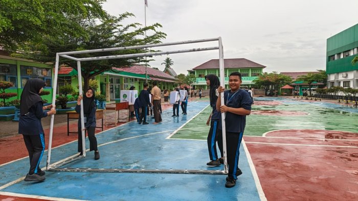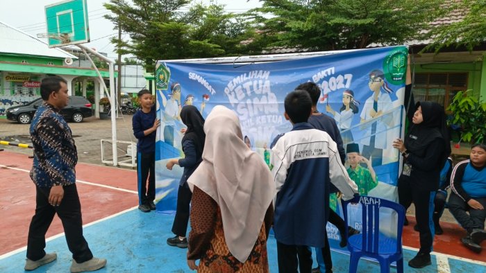 Kota Jambi (MTsN 2) - Pada Rabu pagi, 12 November 2025, panitia pemilihan OSIM (Organisasi Siswa Intra Madrasah) MTsN 2 Kota Jambi telah memulai persiapan sejak awal. Meskipun lapangan madrasah masih basah akibat hujan yang turun sejak dini hari, semangat para panitia tidak berkurang. Mereka tetap menjalankan tugas dengan penuh dedikasi untuk memastikan kelancaran proses pemilihan.