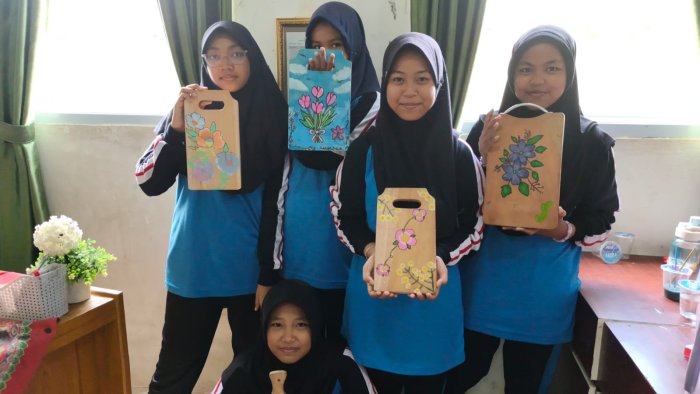 Penggunaan telenan kayu sebagai media lukis memberikan tantangan tersendiri. Permukaan kayu yang berbeda dari kertas atau kanvas membuat siswa harus lebih teliti dan kreatif dalam menerapkan teknik melukis. Namun, tantangan ini justru mendorong mereka untuk berinovasi. Hasil karya yang dihasilkan pun beragam, mulai dari lukisan bunga yang lembut, hewan yang ekspresif, pola geometris yang rapi, hingga bentuk figuratif yang penuh imajinasi.