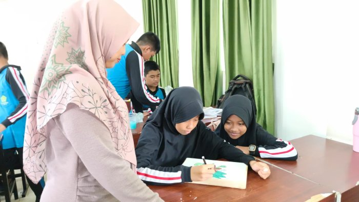 Kota Jambi (MTsN 2) - Didampingi Titin Sumanty, S.Sn, kelas 7H MTsN 2 Kota Jambi melakukan kegiatan pembelajaran Seni Budaya pada Jumat, 14 November 2025. Dalam pelajaran tersebut, para siswa diajak membuat karya seni lukis bertema flora, fauna, geometris, dan figuratif dengan menggunakan media telenan kayu. Kegiatan ini merupakan bagian dari materi seni rupa yang bertujuan mengenalkan berbagai bentuk objek serta teknik pewarnaan pada media alternatif.