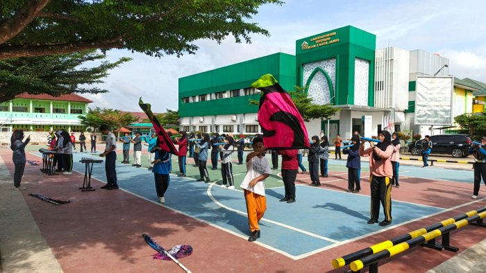 Kota Jambi (MTsN 2) - Semangat siswa MTsN 2 Kota Jambi kembali bergema di halaman madrasah pada Sabtu pagi. Tim drum band melanjutkan rangkaian latihan intensif dengan fokus merapikan gerakan display lagu Serampang Laut, kemudian beralih pada display lagu Guruku Tersayang. Latihan ini ditutup dengan simulasi upacara gabungan bersama kelas 8H, menghadirkan suasana penuh disiplin dan kebersamaan.