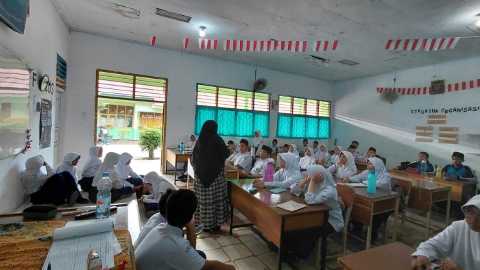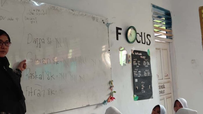 Pada sesi pembelajaran, fokus utama diarahkan pada materi Sistem Persamaan Linear Dua Variabel (SPLDV). Guru pembimbing, Epa Susanty, S.Pd., memberikan penjelasan bertahap mulai dari konsep dasar hingga strategi penyelesaian menggunakan metode eliminasi, substitusi, dan grafik. Suasana belajar berlangsung interaktif, mencerminkan semangat siswa untuk memahami materi yang menjadi bagian penting dari kisi-kisi olimpiade matematika jenjang SMP/MTs.