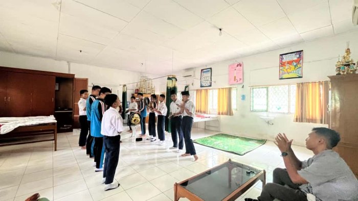 Latihan berlangsung dengan penuh semangat di bawah arahan pelatih tim hadroh. Para siswa berlatih secara kompak dan penuh penghayatan, berupaya menampilkan performa terbaik yang diharapkan dapat memberikan kesan hangat dan religius kepada rombongan tamu dari Batam. Seluruh anggota tim menunjukkan dedikasi tinggi dalam setiap sesi latihan, memperhatikan detail gerakan dan kekompakan suara agar penampilan mereka semakin maksimal.