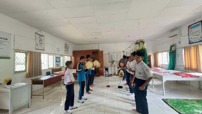 Kota Jambi (MTsN 2) - Tim hadroh MTsN 2 Kota Jambi menggelar latihan intensif pada Selasa, 18 November 2025, di Gedung UKS madrasah. Latihan ini dilakukan sebagai bagian dari persiapan menyambut kunjungan studi belajar dari Kementerian Agama Kota Batam yang dijadwalkan akan berkunjung ke madrasah tersebut.