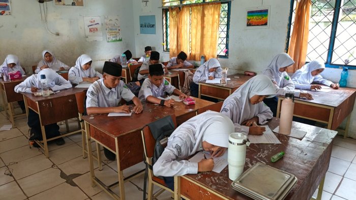 Kota Jambi (MTsN 2 Kota Jambi) - Kelas 7A hari ini melaksanakan asesmen sumatif untuk mata pelajaran Matematika dengan materi Bab 3: Rasio. Kegiatan ini dipandu langsung oleh guru pengampu, Bapak Wahid Kurniawan Suwarji, dan menjadi penutup rangkaian pembelajaran matematika pada semester ganjil tahun pelajaran 2025/2026.