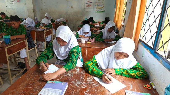 Kota Jambi (MTsN 2 Kota Jambi) — Pada pertemuan terakhir pembelajaran matematika semester ganjil tahun pelajaran 2025/2026, siswa-siswi kelas 7A MTsN 2 Kota Jambi melaksanakan kegiatan evaluasi pembelajaran yang unik dan bermakna. Dipandu langsung oleh guru matematika mereka, Pak Wahid, kegiatan ini mengajak siswa untuk menuliskan refleksi tentang pengalaman belajar matematika selama satu semester penuh.