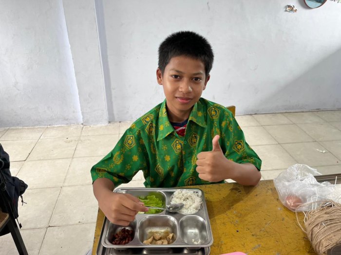 Program MBG ini tidak hanya bertujuan memenuhi kebutuhan gizi siswa, tetapi juga membangun kesadaran akan pentingnya pola makan sehat dan rasa syukur atas makanan yang diterima. Guru piket turut memastikan pembagian berjalan lancar dan siswa menikmati makanan dengan tertib.
