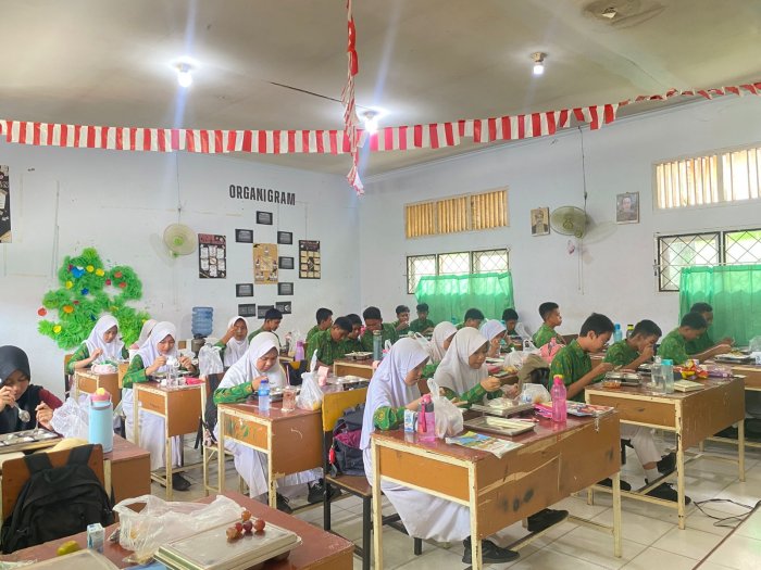 Kota Jambi (MTsN 2 Kota Jambi) — Program Makan Bergizi Gratis (MBG) kembali hadir menyapa siswa-siswi MTsN 2 Kota Jambi, kali ini khusus untuk kelas 9G dan 9J. Kegiatan berlangsung tertib dan penuh antusiasme di area kantin madrasah, dengan pengawasan dari guru piket dan tim MBG.