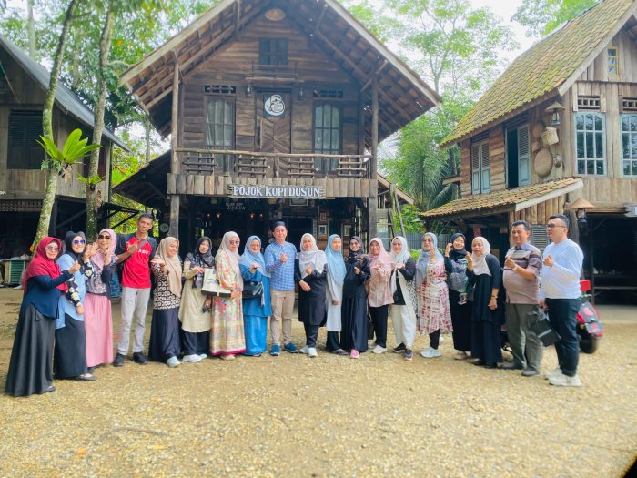 Di sela-sela kunjungan, rombongan juga singgah di Pojok Kopi Dusun, sebuah kedai kopi khas yang berada di dalam kawasan candi. Tempat ini menjadi titik rehat yang menyenangkan bagi peserta, sekaligus memperkenalkan cita rasa lokal dan suasana dusun yang tenang. Sambil menikmati kopi dan minuman tradisional, peserta berdiskusi ringan tentang potensi wisata edukatif berbasis budaya yang bisa dikembangkan di daerah masing-masing.
