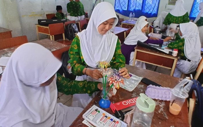 Kota Jambi (MTsN 2) - Akhir semester ganjil di MTsN 2 Kota Jambi diwarnai dengan kegiatan pembelajaran yang penuh semangat dan kreativitas pada mata pelajaran Ilmu Pengetahuan Sosial (IPS). Siswa kelas 7A dan 7B menutup semester dengan melaksanakan proyek pembuatan produk dari barang-barang bekas, yang merupakan bagian dari materi Pembangunan Berkelanjutan dan tradisi lisan dengan guru mata pelajaran , Desi Karlina, S.Pd.