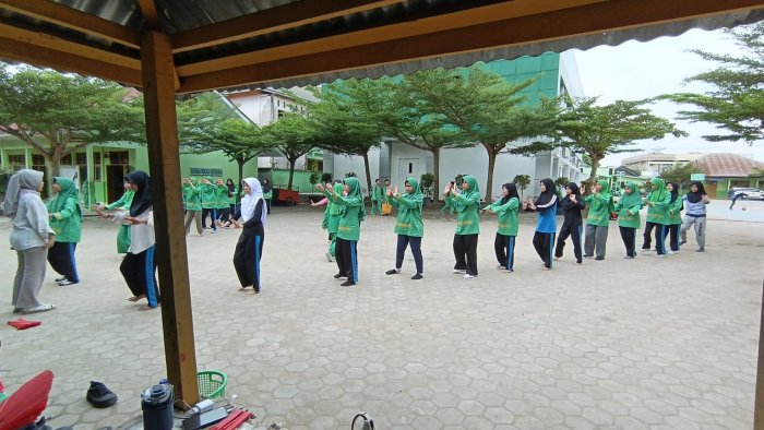 Setiap hentakan kaki para siswi menyerupai detak yang sama, sementara gerakan tangan mereka seolah menjadi alunan yang menyatukan hati. Suasana di halaman madrasah pun terasa semakin hidup oleh semangat dan antusiasme yang terpancar dari para peserta latihan. Kegiatan ini sekaligus menjadi simbol perjalanan siswa dari langkah-langkah kecil menuju harmoni yang lebih besar.