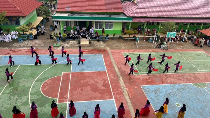 Kota Jambi (MTsN 2 Kota Jambi) - Selasa lalu, MTsN 2 Kota Jambi menggelar peringatan Hari Guru Nasional Tahun 2025 dengan penuh khidmat dan meriah. Seluruh rangkaian acara dapat disaksikan dari rooftop Laboratorium Terpadu madrasah, yang memberikan sudut pandang luas terhadap lapangan utama tempat kegiatan berlangsung.