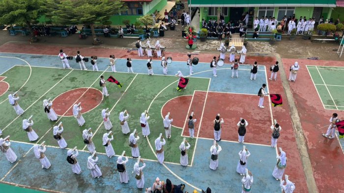 Selanjutnya, tim Pramuka menampilkan atraksi baris-berbaris yang kreatif dan penuh kekompakan. Persembahan ini menjadi simbol kedisiplinan dan kerja sama yang selama ini ditanamkan guru kepada siswa.