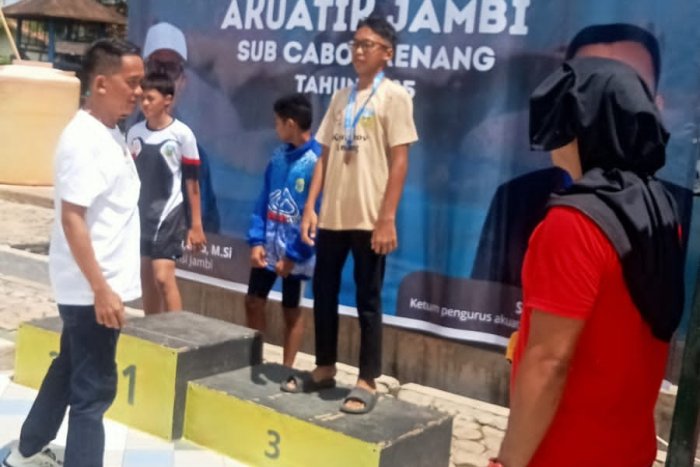 Kota Jambi (MTsN 2) - Muhammad Eric Eduardo, siswa MTsN 2 Kota Jambi, berhasil meraih juara tiga pada kategori gaya dada junior dalam Kejuaraan Provinsi (Kejurprov) Akuatik Jambi, sub cabang olahraga renang 2025. Kompetisi ini berlangsung di kolam renang Telago Ratu, Kota Baru, Jambi, pada 24 hingga 26 November 2025.