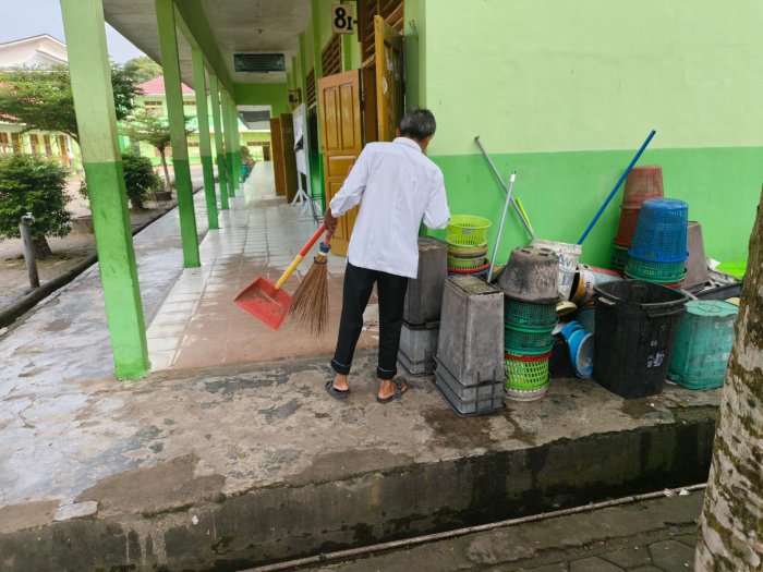ota Jambi (MTsN 2) - Di tengah kesibukan siswa yang serius menghadapi ujian, terdapat peran penting dari tenaga kebersihan madrasah yang kerap luput dari perhatian. Senin, 1 Desember 2025, pelaksanaan Asesmen Sumatif Akhir Semester (ASAS) di MTsN 2 Kota Jambi memasuki hari keempat, sejak pagi hari, para petugas kebersihan telah bekerja menjaga kenyamanan dan kebersihan lingkungan sekolah.