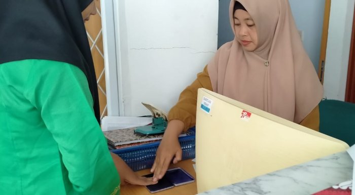 Kota Jambi (MTsN 2) - Proses pelayanan sidik jari untuk ijazah alumni di MTsN 2 Kota Jambi masih terus berjalan. Kegiatan ini berlangsung di ruang Pelayanan Terpadu Satu Pintu (PTSP) madrasah dengan menerapkan standar ketelitian tinggi. Tujuannya adalah memastikan keabsahan dokumen akademik yang menjadi syarat penting bagi para alumni, baik untuk keperluan administrasi pendidikan maupun kebutuhan lainnya.
