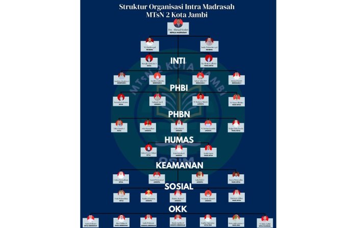 OSIM MTsN 2 Kota Jambi memiliki struktur seksi bidang yang lengkap dan saling mendukung. Setiap bidang memiliki peran khusus yang jika dijalankan dengan baik, mampu menciptakan lingkungan madrasah yang aktif, produktif, religius, dan penuh kreativitas. Peran-peran ini menjadikan OSIM bukan hanya organisasi biasa, tetapi sekolah kehidupan bagi siswa untuk belajar kerja sama, kepemimpinan, dan tanggung jawab.