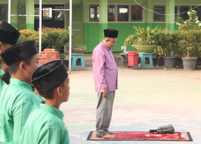 Dengan tertib dan teratur, siswa berbaris rapi di area shalat, lalu melaksanakan shalat sunnah yang dikenal sebagai shalat pembuka rezeki dan penyejuk hati. Kehadiran para guru yang mendampingi turut memastikan kegiatan berlangsung dengan penuh kekhusyukan dan kedisiplinan.