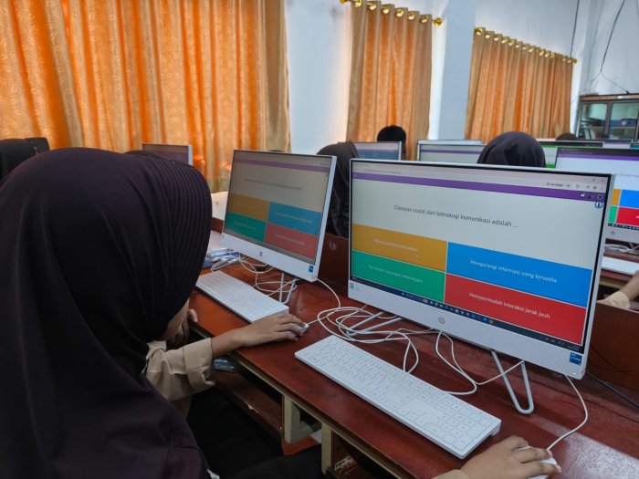 Kota Jambi (MTsN 2) - Rabu (7/1/2026) kelas 9A MTsN 2 Kota Jambi memulai semester baru dengan melaksanakan asesmen awal kognitif untuk mata pelajaran Informatika. Kegiatan ini bertujuan untuk mengukur kemampuan dasar siswa sebelum mereka mempelajari materi yang lebih mendalam. Selain itu, asesmen ini juga menjadi sarana untuk memperkenalkan metode pembelajaran yang lebih menyenangkan dengan memanfaatkan teknologi digital.