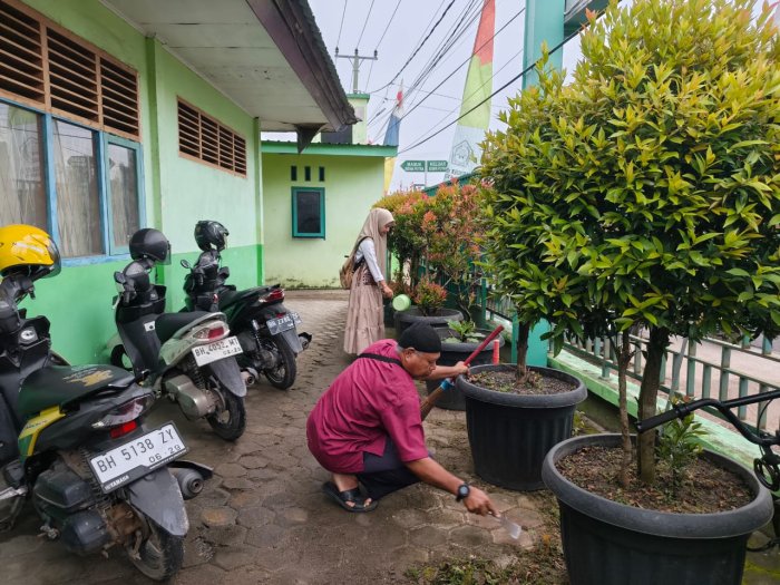 Kepala MTsN 2 Kota Jambi menyampaikan apresiasi atas kerja keras tenaga kebersihan yang selalu konsisten menjaga lingkungan sekolah. Menurut beliau, kebersihan bukan hanya tanggung jawab satu pihak, melainkan seluruh warga madrasah. Namun, tenaga kebersihan memiliki peran penting sebagai garda terdepan dalam menjaga kenyamanan bersama.