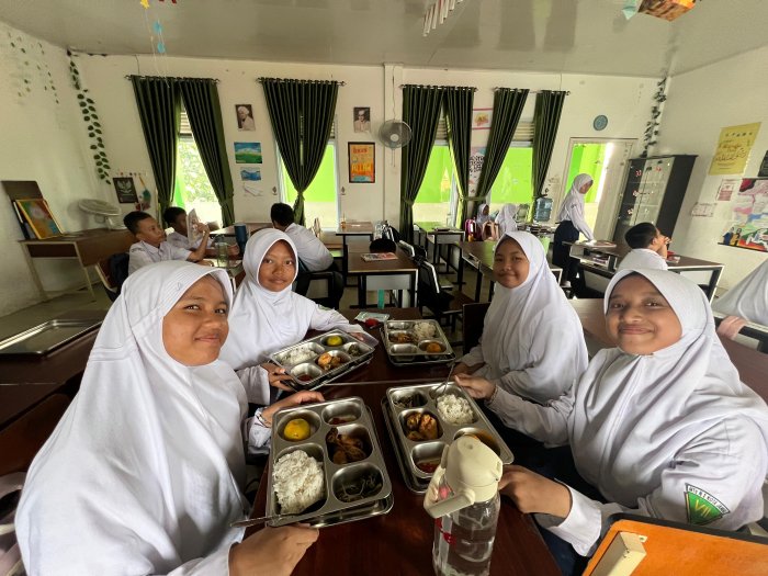 Kegiatan MBG diikuti oleh seluruh siswa MTsN 2 Kota Jambi dengan pendampingan petugas dari tenaga kependidikan untuk distribusi makanan. Mereka memastikan setiap anak mendapatkan porsi makanan yang cukup, yang dibagikan merata kepada semua siswa.