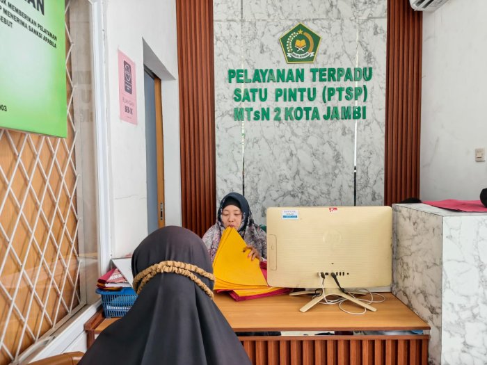 Melalui PTSP, informasi ini diterima oleh pihak madrasah untuk kemudian disampaikan kepada siswa sesuai kebutuhan. Dengan cara ini, PTSP berfungsi sebagai jembatan komunikasi antara mitra pendidikan dan pihak sekolah. Suasana pelayanan pada hari itu menunjukkan peran PTSP sebagai pusat layanan terpadu yang efektif. Dari pengambilan ijazah alumni hingga penerimaan penawaran program sekolah, PTSP MTsN 2 Kota Jambi terus berkomitmen memberikan pelayanan terbaik bagi seluruh pihak yang membutuhkan. (JLM)