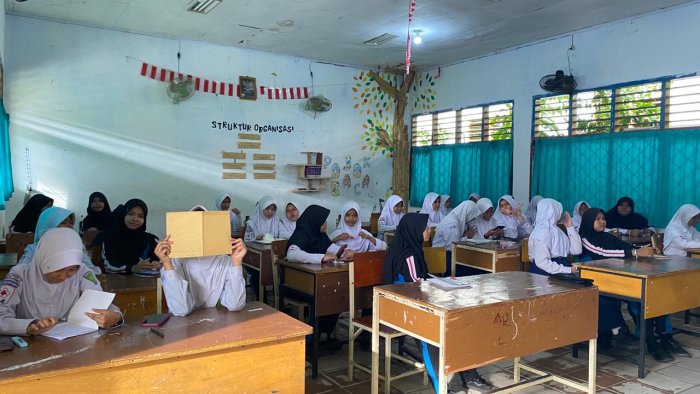 Suasana latihan semakin hidup dengan sorak-sorai dukungan antar kelompok. Siswa kelas VII tampak antusias menebak kata dan gambar, sedangkan kelas VIII bersemangat menjawab pertanyaan dengan cepat dan tepat. Kegiatan ini menunjukkan bahwa belajar bisa dilakukan dengan cara yang menyenangkan sekaligus mendidik.