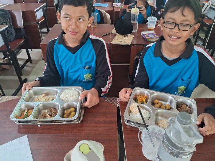 Kota Jambi (MTsN 2) - Program Makan Bergizi Gratis (MBG) dari pemerintah kembali hadir di MTsN 2 Kota Jambi. Kegiatan rutin ini semakin variatif karena siswa menerima dua paket MBG sekaligus yang disiapkan oleh dapur rekanan resmi.