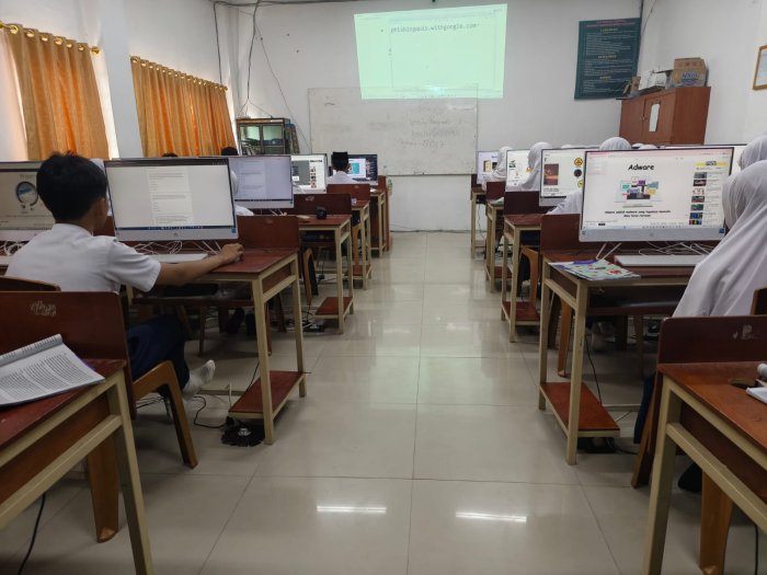 Kegiatan ini berlangsung di laboratorium komputer MTsN 2 Kota Jambi yang dilengkapi perangkat memadai. Setiap siswa menggunakan komputer secara mandiri, sehingga pembelajaran berlangsung lebih fokus dan interaktif.