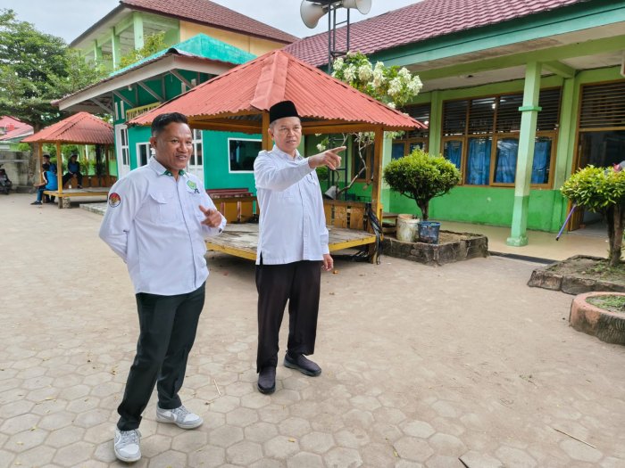 Kota Jambi (MTsN 2) - Kepala Madrasah MTsN 2 Kota Jambi, Drs. Ahmad Syukri, bersama Staf Tata Usaha Caripuddin, melaksanakan kegiatan monitoring lingkungan madrasah pada Selasa, 27 Januari 2026. Kegiatan ini dilakukan sejak pagi hingga menjelang siang dengan tujuan memastikan kondisi fasilitas madrasah tetap terawat, indah, dan fungsional.